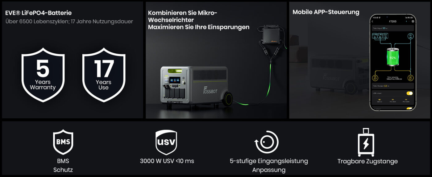 - ✅ 6500 Zyklen / 17 Jahre – EVE Premium-Batterie