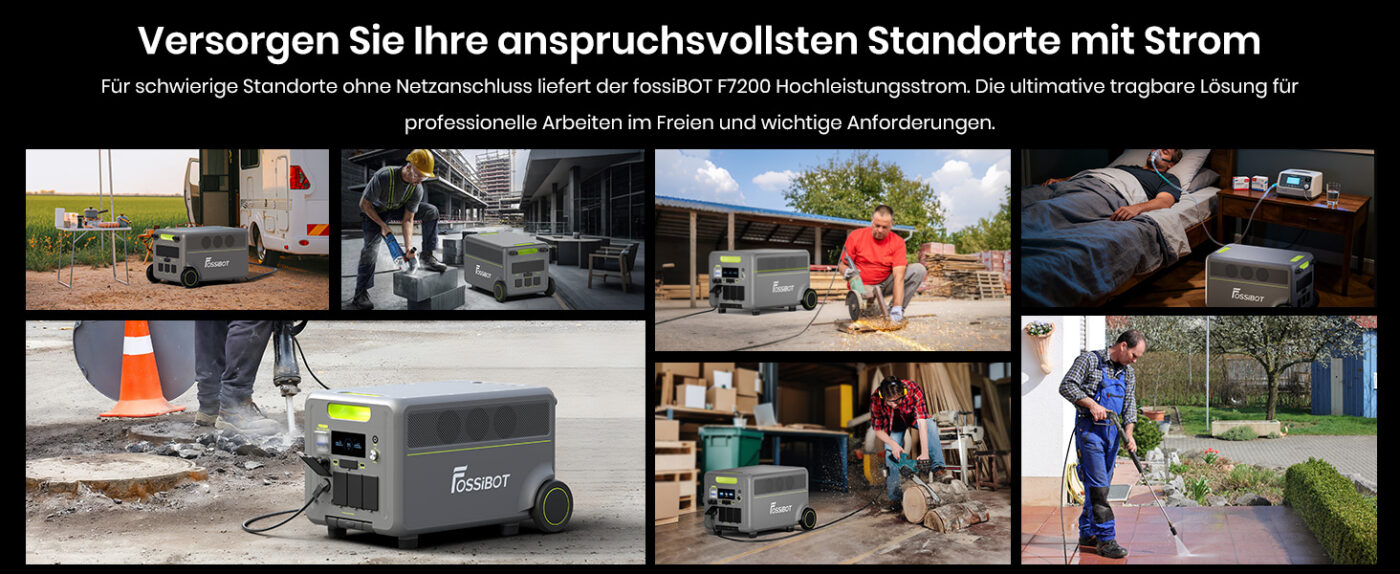 Die FOSSiBOT F7200 ist die leistungsstärkste tragbare Powerstation auf dem Markt. 7200W Leistung, direkter Anschluss an den Sicherungskasten, 17 Jahre Batterielaufzeit – die ultimative Lösung, um nie wieder Stromausfälle zu erleiden.