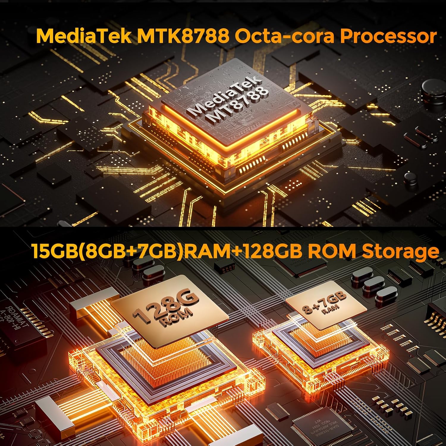- ⚙️ Prestazioni Octa-Core: MediaTek Helio (MT8788 P60) fino a 2.0 GHz + 15GB RAM (8GB + 7GB estesa) e 128GB di archiviazione (esp. fino a 1TB).