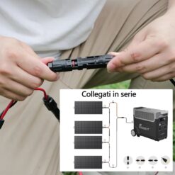 - Collega i MC4 del pannello all’ingresso solare della power station (o usa adattatore dedicato, se richiesto)